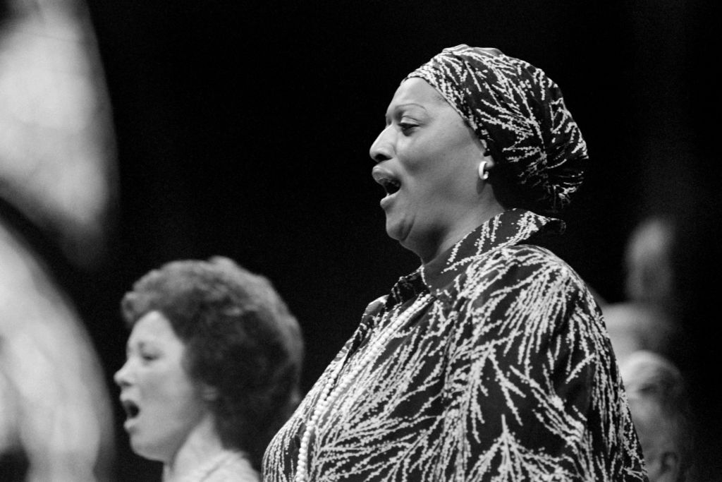 In this photograph taken on June 23, 1983, US soprano Jessye Norman performs Mahler’s Symphonie number 2 at The Basilica Cathedral of Saint Denis in Paris. – Celebrated opera singer Jessye Norman, an American soprano who showcased her majestic voice in performances around the world, died September 30, 2019, her family said. She was 74 years old. (Photo by Ringuin / AFP) (Photo credit should read RINGUIN/AFP/Getty Images) photography,france,arts culture and entertainment,horizontal,family,celebration,paris – france,theatrical performance,performance,singer,death,1980-1989,archival,performing arts event,majestic,voice,opera,number 2,soprano singer,jessye norman,gustav mahler